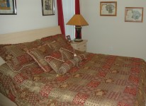 This King Bedroom, decorated with a European theme has its own private bathroom and cable TV