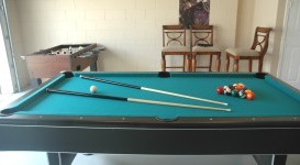 Brand new for 2008 games room with pool table, foosball table and air hockey